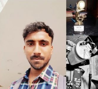 For securing first prize in college model competition by designing an automatic hand sanitizer!
